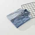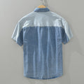 Design Sense Color Contrast Patchwork Striped Denim Short Sleeve Shirt
